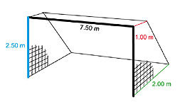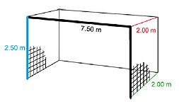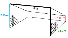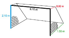 Standardowa siatka do piłki ręcznej. Siatka jest obszyta linką o grubości 5 mm. Oczko 100 mm. Wymiary: 3,10 m x 2,10 m x 1 m x 1 m.